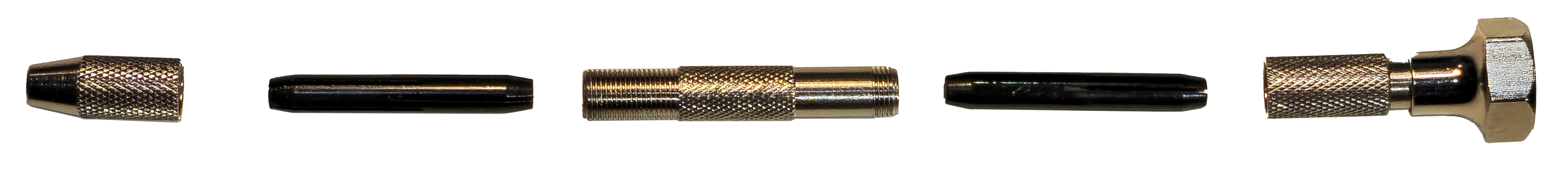 Handy holder for drills, taps, pins, etc. Includes: 2 reversible collets with capacities 0-1.2mm & 1.3-2.4mm and 0.8-2.0mm & 1.8-2.9mm. Incorporates swivel head for comfort and efficiency. Comes complete with 5 drill bits – 1.0, 1.2, 1.4, 1.5, 1.8mm.